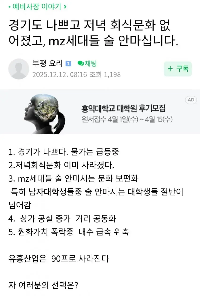 젊은 애들이 술을 안먹어서 힘든 사장님들