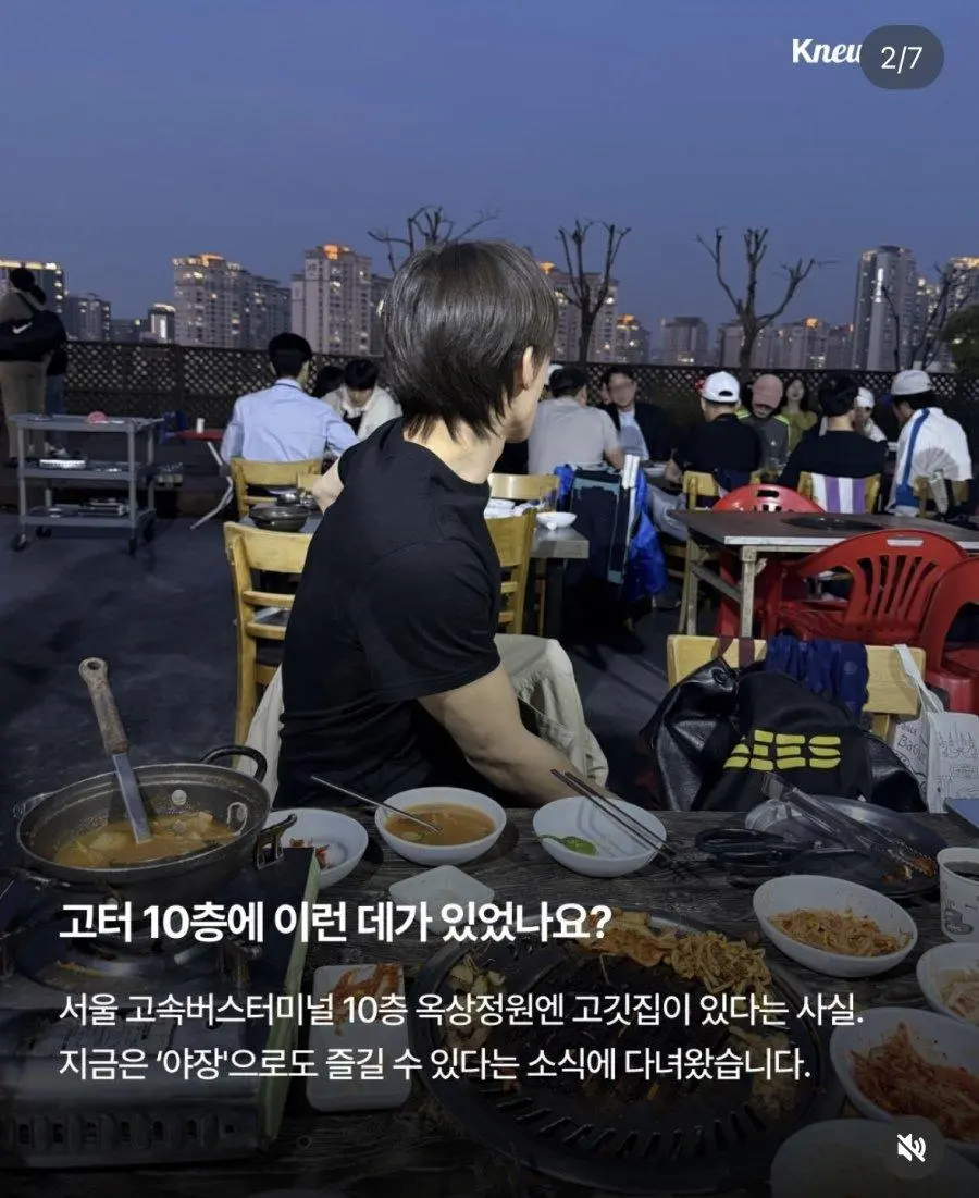 고속터미널 옥상 간판 바로 아래서 고기먹기