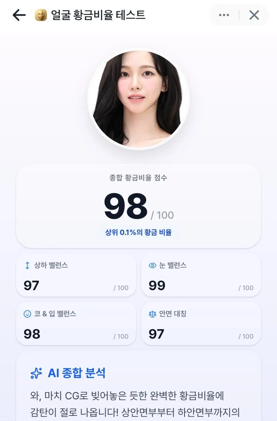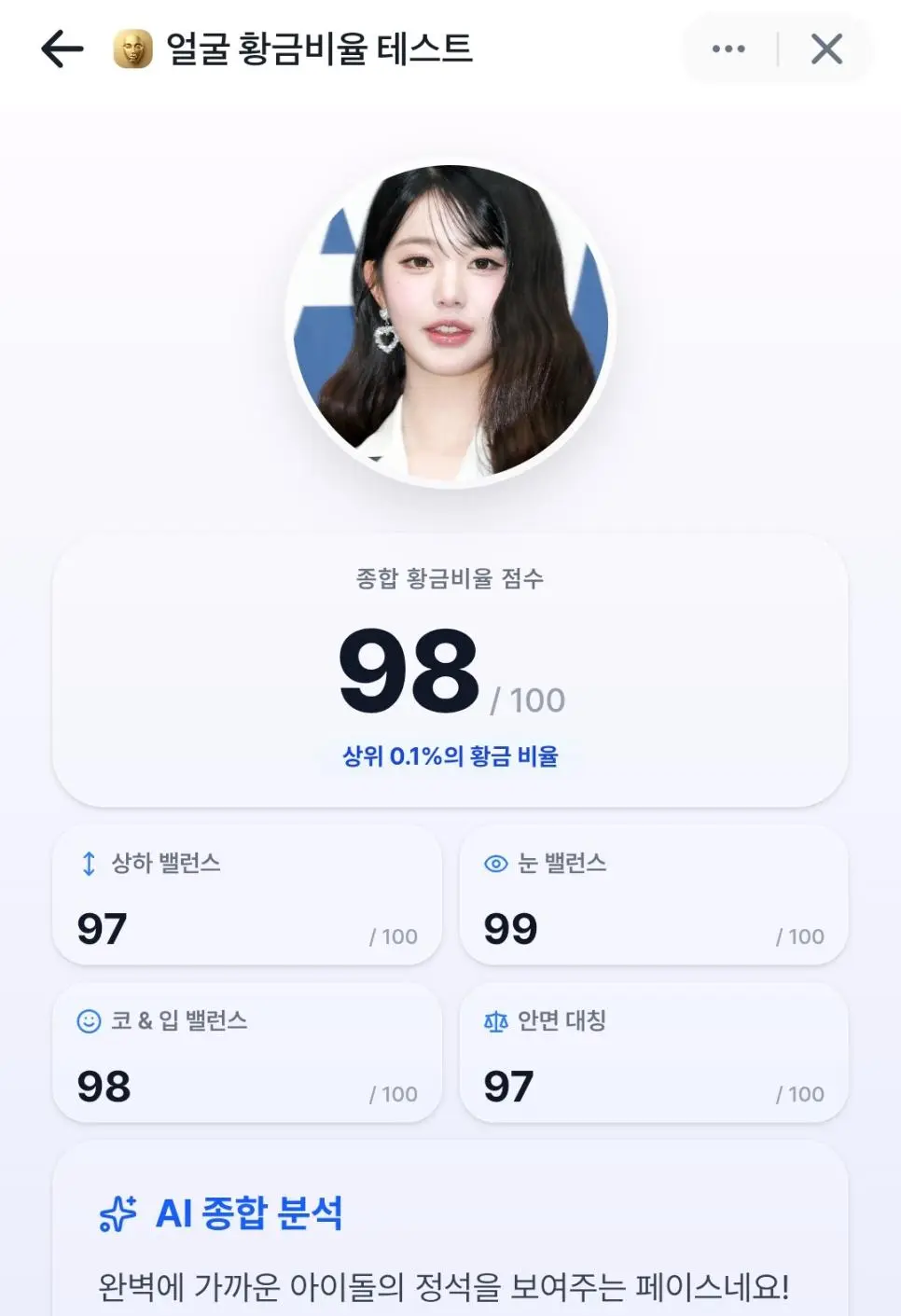 얼굴 황금비율 분석해주는 앱 있길래 카리나 장원영 얼굴 넣어봤는데