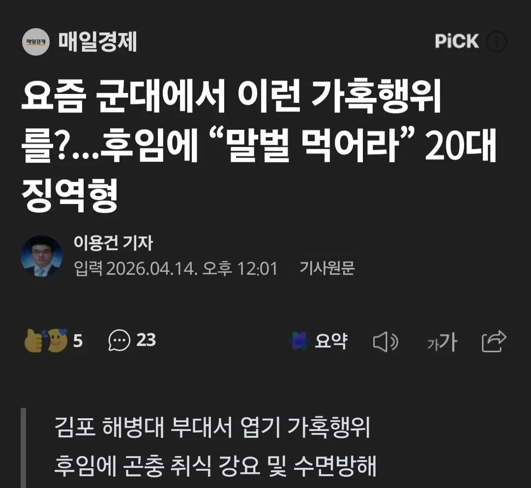 후임보고 말벌 먹으라고 가혹행위를 한 해병대원 ㄷㄷ