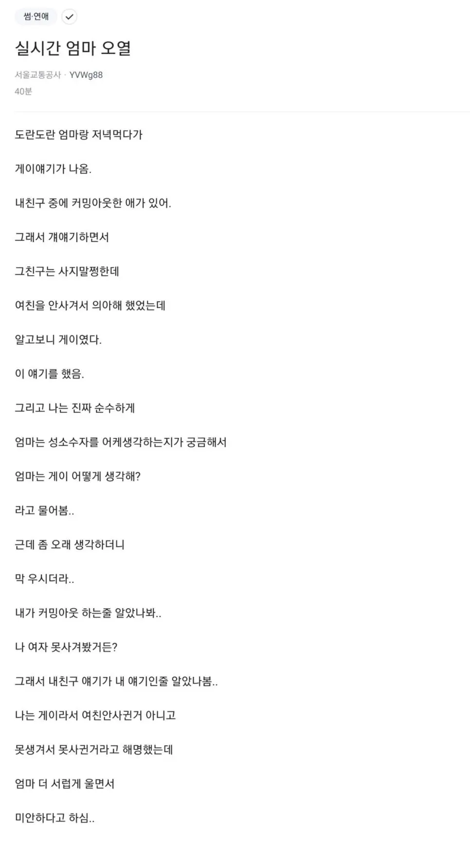 블라인드 성님의 커밍아웃