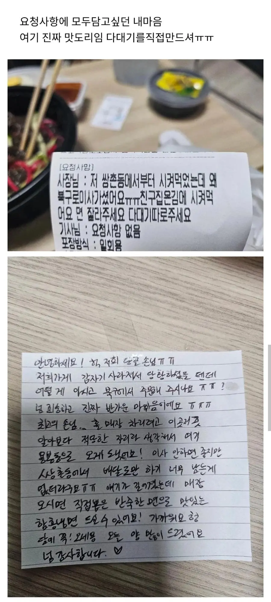 없어진 단골 냉면집 발견해서 주문한 고객