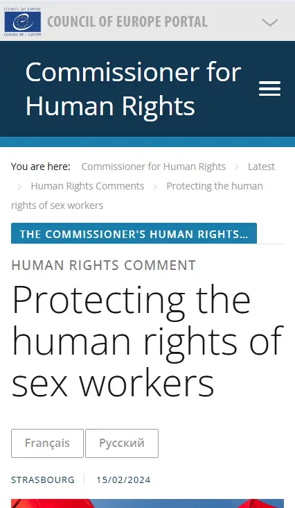 유럽연합: 성인간 합의된 성매매 범죄 아님