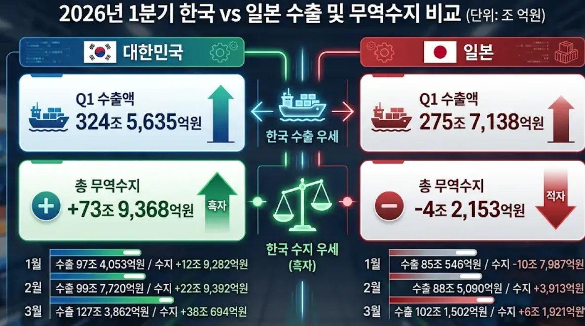 1분기 한국 일본 수출액 우리나라 승