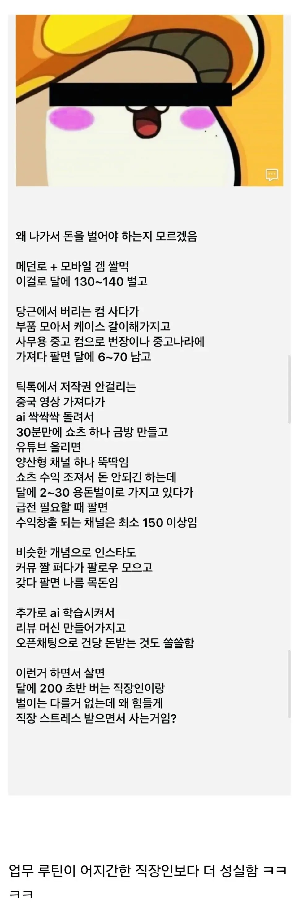 나가서 돈버는게 이해 안되는 사람