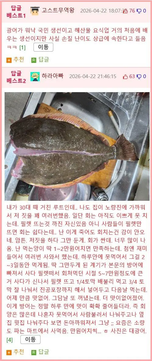 취미로 노량진에서 회 사와서 직접 손질해서 먹는다는 여성