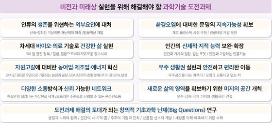 ‘인류사회에 기여하는 대한민국’을 위해 극한환경 생존기술, 우주·해저도시 건설, 우주생산 및 농업 기술 등을 통해 미지의 영역을 삶의 공간으로까지 확장해 나갈 계획이다.