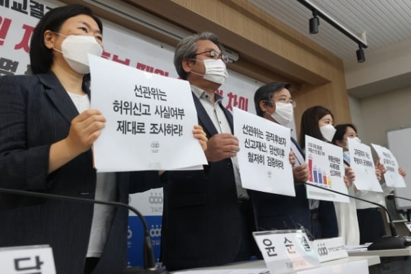 이어 "공직 후보자 당시 등록한 재산신고 내용과 당선 이후 등록 재산이 일치하지 않는 의원들은 재산의 누락 및 축소, 추가등록 등에 대해 공개 소명해야 한다"며 "객관적 자료로 입증하지 못하거나 해명이 사실이 아닐 경우 고발 등 법적 조치를 진행하겠다"고 강조했다.