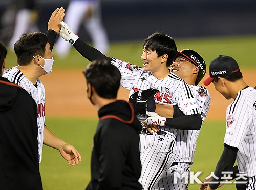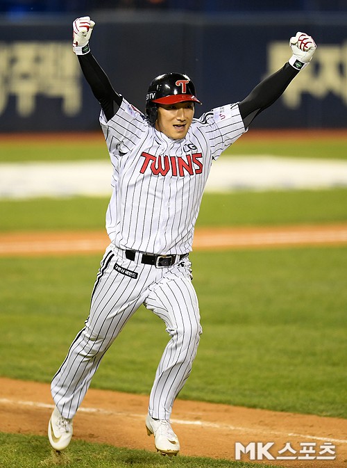 대주자 신민재가 프로 데뷔 후 첫 끝내기 안타의 주인공이 됐다.