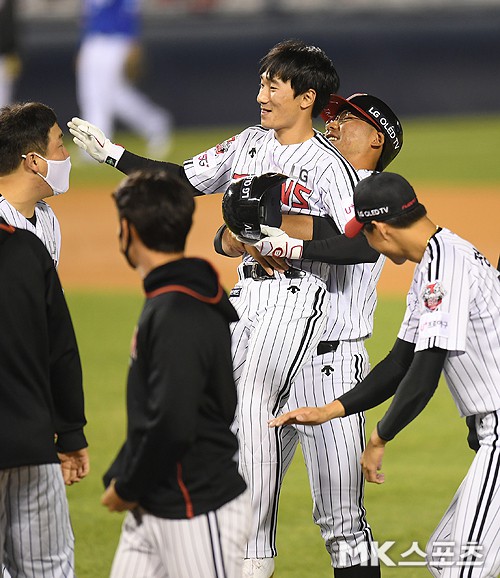 8일 오후 서울 잠실야구장에서 '2020 프로야구 KBO 리그' 삼성 라이온즈와 LG 트윈스의 경기가 열렸다. 이날 경기에서 LG는 신민재의 9회말 끝내기 안타로 승리하며 4위 자리를 지켰다.
