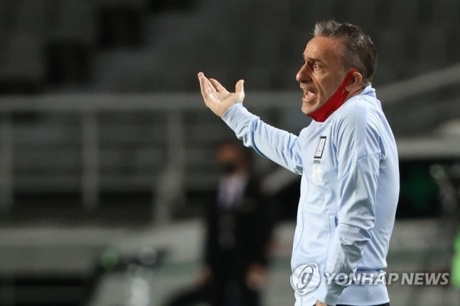 선수들을 독려하는 파울루 벤투 축구 국가대표팀 감독