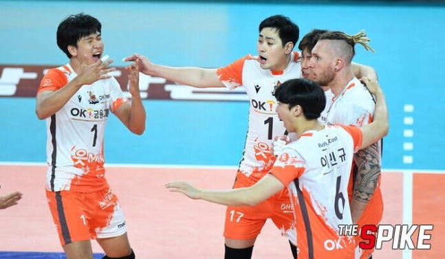조금 더 지켜봐야 하지만, 지난 시즌 초반과 똑같이 순조로운 스타트를 알렸다. 그 중심에는 비시즌 팀에 새롭게 합류한 진상헌과 펠리페가 있었다. 진상헌은 개막전에서 발목 부상 여파로 인해 4세트만 뛰었음에도 5점을 올렸다. 특히 대한항공전을 통해 석진욱 감독이 진상헌을 왜 강하게 원했는지 알 수 있었다. 강력한 속공이면 속공, 블로킹이면 블로킹. 진상헌은 그날 블로킹 5개 포함 13점을 올렸다. 또한 진상헌이 온 후 OK금융그룹의 웜업존 분위기는 더욱 활기를 띠고 있다. 펠리페도 두 경기 모두 공격 성공률이 50%를 넘었다(한국전력전 54.05%, 대한항공전 60.42%). 여기에 송명근까지 터지니 석진욱 감독은 행복하다. 석 감독은 "진상헌-펠리페가 팀에 안정감을 주고 있다"라고 평했다.