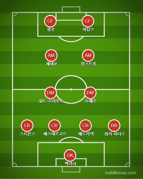 이에 랄프 하젠휘틀 사우샘프턴 감독은 지난 애스턴 빌라와의 7라운드 때 4-2-2-2 포메이션에서 이선 공격형 미드필더 역할을 수행했던 티오 월콧을 잉스 대신 체 아담스의 투톱 파트너로 전진 배치시켰다. 월콧이 올라가면서 생긴 공석은 무사 제네포가 메웠다. 버트란드의 부상 공백은 중앙 수비수 잭 스티븐스가 대체했다.