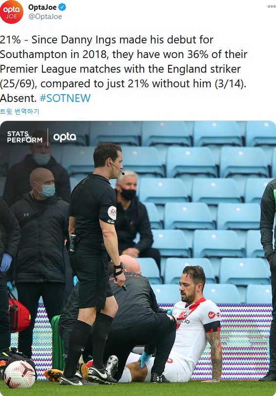 사우샘프턴은 2018/19 시즌, 잉스가 팀에 가세한 이래로 그가 결장한 14경기에서 3승 2무 9패라는 처참한 성적을 올리고 있었다. 승률은 21%로 처참한 수준이었고, 경기당 승점은 0.79점에 불과했다. 반면 그가 출전한 69경기에서 25승 18무 26패로 승률은 36%로 15% 상승했고, 경기당 승점도 1.35점으로 2배 가까이 더 올렸다. 당연히 잉스의 결장은 큰 공백으로 작용할 것이 분명했다.