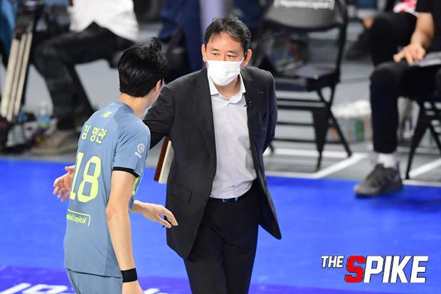 우리 팀이 수비가 되어가고 있다. 리시브가 많이 안 좋았다고 생각한다면, 지금은 리시브 순위는 낮지만 반격 상황에서 미들블로커, 윙스파이커 모두 괜찮다. 그걸 활용하지 않는 게 이상한 것이다. 그런 부분을 잘 준비해서 여기까지 온 것 같다. 정말 좋은 외국인 선수가 오더라도 점유율은 올라가겠지만 지금 선수들을 활용해야 한다. 이민규와 곽명우가 운영을 잘하고 있다.