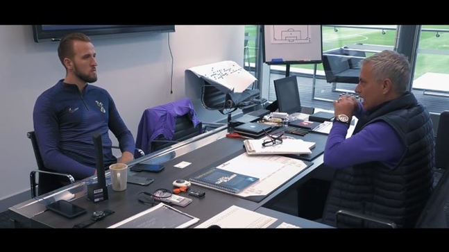 영국 기브미스포츠는 23일(한국시간) 토트넘 다큐멘터리 'All or nothing'에서 무리뉴 감독이 토트넘 지휘봉을 잡은 직후 케인과의 면담 장면을 공개했다.