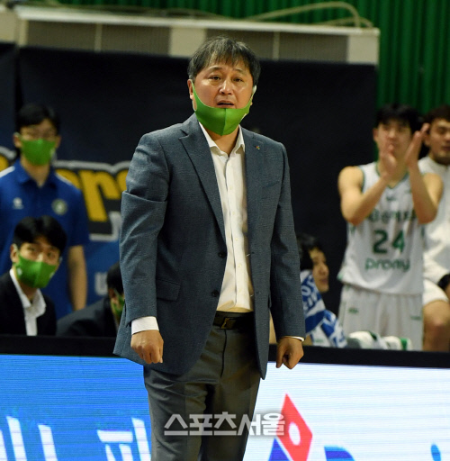 | 2020-2021 프로농구 서울 삼성과 원주 DB의 경기가 11일 잠실실내체육관에서 열렸다.DB 이상범 감독이 경기를 지켜보고 있다. 2020. 11. 11. 잠실 | 최승섭기자 |