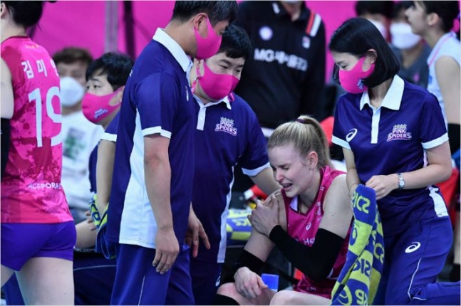 흥국생명은 어깨 근육을 다쳐 최소 4주 동안 결장해야 하는 외국인 선수 루시아의 교체를 검토하지만 현재 선택지 중에 루시아를 대체할 마땅한 자원이 없다는 점이 고민이다.(사진=한국배구연맹)