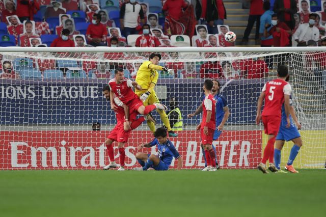 ACL에서 연일 선방쇼를 펼친 조수혁 골키퍼(노란색)의 모습. 한국프로축구연맹 제공