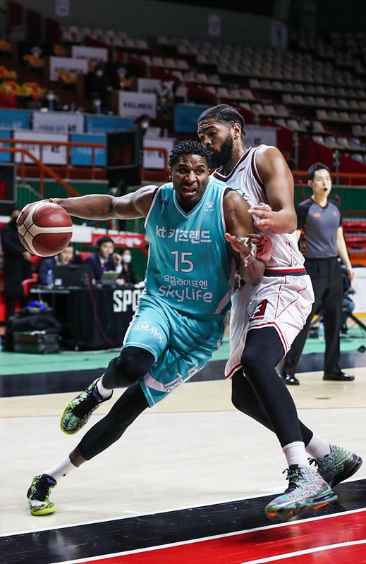외국인선수들의 득점이 기대에 못 미치기 때문이다. KT는 올 시즌 28경기에서 총 2326점을 뽑았는데, 외인들(퇴출된 마커스 데릭슨, 존 이그부누 포함)에게선 592점이 나왔다. 팀 전체 득점의 25.5%밖에 되지 않는다. 10개 구단 중 외국인선수들의 득점이 가장 적다.