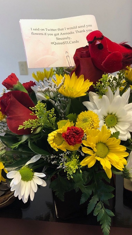 'MLB.com'은 2월 5일(이하 한국시간) 아레나도의 트레이드가 확정되자 한 팬이 존 모젤리악 구단 사장에게 꽃다발을 보냈다는 이야기를 소개했다. 아레나도는 지난 2일 5대 1 트레이드를 통해 콜로라도 로키스에서 세인트루이스로 넘어갔다.