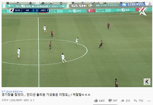 한국프로축구연맹은 지난 7일 공식 유튜브 채널에 수원FC전에 출전한 기성용의 플레이 하이라이트 영상을 게재했다. 이 영상은 10일 오전 11시 현재 122만 조회 이상을 기록했다. 업로드 3일 만에 100만 이상을 돌파할 정도로 엄청난 관심 속에 조회 수가 빠르게 증가하고 있다.