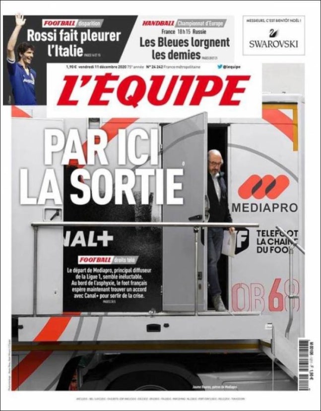 프랑스 최대 스포츠 일간지 ‘레키프’가 지난해 12월 12에 낸 일면 제호다.
