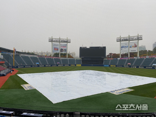 당시 잠실구장은 처음으로 대형방수포를 선보인 바 있다.