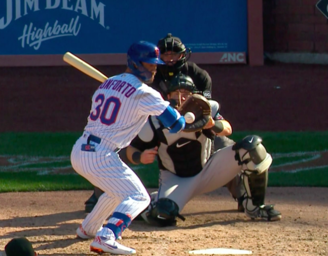 그러나 메츠 선수들이 끝내기 세리머니를 위해 그라운드에 쏟아져 나왔고, 돈 매팅리 마이애미 감독은 비디오 판독을 요청했지만 결과는 바뀌지 않았다. 리플레이상 콘포토의 팔꿈치 보호대에 공이 살짝 스친 것은 확인됐다. 그러나 스트라이크존에 들어온 공에 맞으려는 타자의 고의성 여부는 비디오 판독 대상이 아니라 어떻게 손써볼 도리가 없었다.