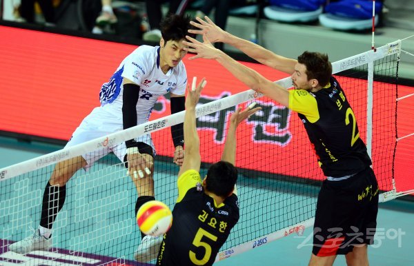 KB손해보험 선수 시절의 김학민 신임 코치(왼쪽). 스포츠동아DB