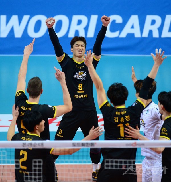 KB손해보험 선수 시절의 김학민 신임 코치(가운데). 스포츠동아DB