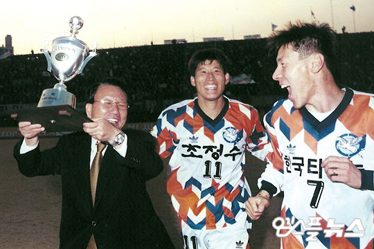 일화 천마 공격을 책임진 고정운(사진 가운데)은 1983년 출범한 K리그 최초 3연패 주역이었다(사진=엠스플뉴스)