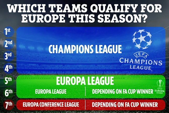 잉글랜드 프리미어리그(EPL)의 다음 시즌 UEFA 클럽대항전 출전 자격 순위. /사진=더 선 캡처