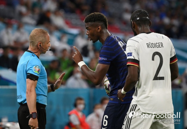 경기 도중 황당한 해프닝도 발생했다. 전반 막판 독일 수비수 뤼디거가 포그바의 어깨를 깨무는 장면이 포착된 것. 이후 포그바는 곧바로 심판에게 반칙을 어필했지만 비디오 판독(VAR)은 실행되지 않았다.