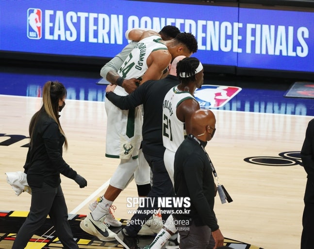 이후 아데토쿤보는 코트로 돌아오지 않았다. 아테토쿤보가 나가자마자 경기 추가 애틀랜타 쪽으로 확 기울었다. 애틀랜타는 상대 지역방어를 소나기 3점포로 무너트렸다.