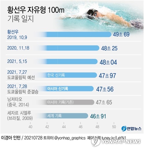 [그래픽] 황선우 자유형 100m 기록 일지