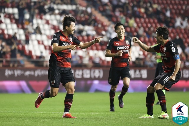김 감독이 이끄는 포항은 15일 저녁 7시 포항 스틸야드에서 벌어진 하나원큐 K리그1 2021 25라운드 수원 FC전에서 3-1로 승리했다. 포항은 전반 15분 강상우의 선제골, 그리고 후반 21분과 후반 35분에 두 골을 몰아친 임상협의 맹활약에 힘입어 후반 3분 양동현의 한 골에 그친 수원 FC를 물리치는 데 성공했다.