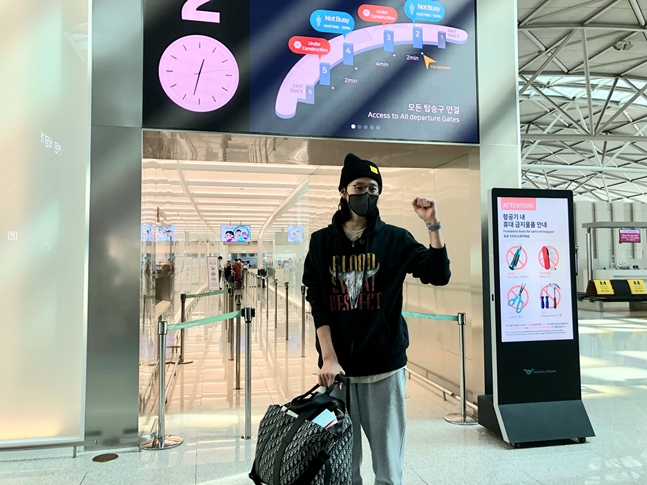 김연경이 22일 오후 출국에 앞서 포즈를 취하고 있다./사진=라이언앳