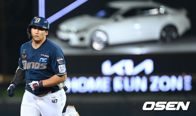 [OSEN=광주, 최규한 기자]7회초 2사 1루 상황 NC 나성범이 달아나는 중월 투런포를 날리고 그라운드를 돌고 있다.