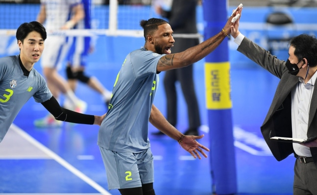 하지만 비디오 판독 결과 블로커 터치아웃으로 판정이 번복되자 양팔을 크게 휘저으며 홈팬들의 뜨거운 함성을 유도했다.