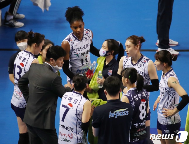 김종민 한국도로공사 감독이 23일 오후 경기도 화성시 향남읍 화성종합경기타운 실내체육관에서 열린 프로배구 '2021-22시즌 도드람 V리그' 여자부 IBK기업은행과 한국도로공사의 경기에서 작전 지시를 하고 있다. 2021.12.23/뉴스1 © News1 박정호 기자