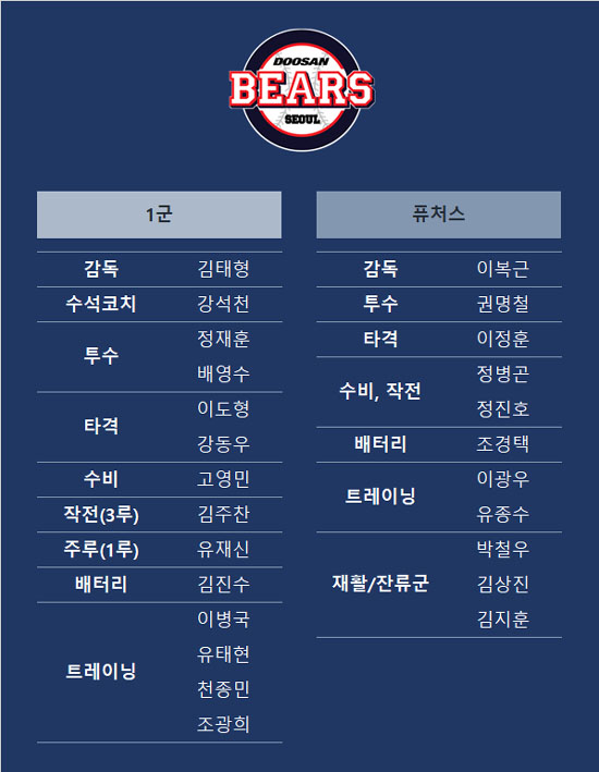 (엑스포츠뉴스 김현세 기자) 두산 베어스가 19일 2022시즌 코칭스태프 보직을 확정했다.