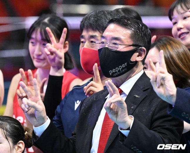 [OSEN=광주, 이상학 기자] 손녀뻘 되는 선수들에게 물벼락을 맞았다. 머리부터 흠뻑 젖은 노감독. 프로배구 최초 70대 사령탑인 김형실(70) 페퍼저축은행 감독에겐 잊을 수 없는 감격의 날이었다.