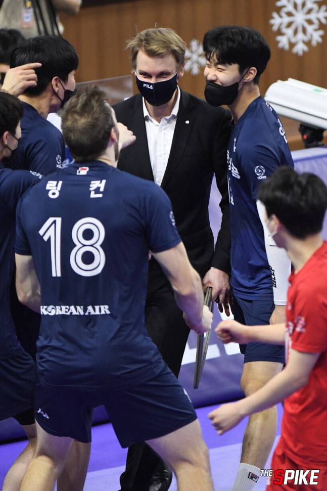 한편, 5연승과 함께 승점 60점 돌파(승점 61점 20승 11패)에 성공한 대한항공 토미 틸리카이넨 감독은 "경기를 어렵게 만들었다고 생각한다. 아이디어도 좋았고, 팀워크도 좋았는데 실행 능력이 부족했다"라고 총평했다.