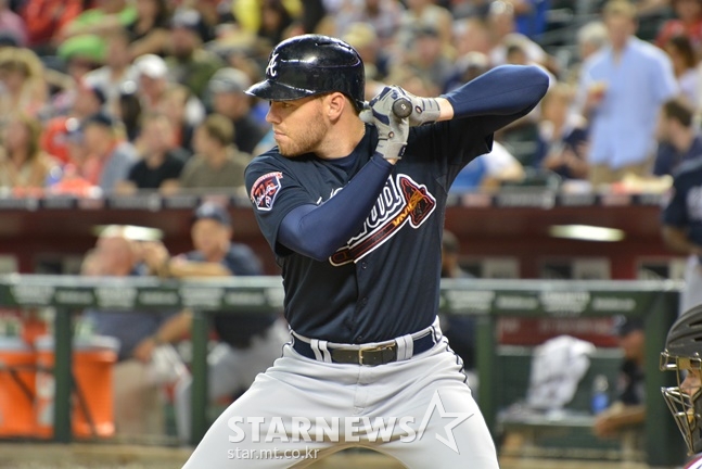 지난 17일 다저스와 6년 1억 6200만 달러(약 1963억 원)에 FA(자유계약선수) 계약한 프리먼은 캘리포니아 출신으로 2007년 메이저리그 신인드래프트 2라운드(전체 78번)에서 애틀랜타의 지명을 받았다. 2010년 9월 빅리그에 데뷔한 후 애틀랜타의 주전 1루수로 발돋움한 그는 메이저리그 12시즌 통산 타율 0.295, 271홈런 941타점의 성적을 기록 중이다. 출루율과 장타력을 합한 OPS도 0.893으로 최정상급이다.