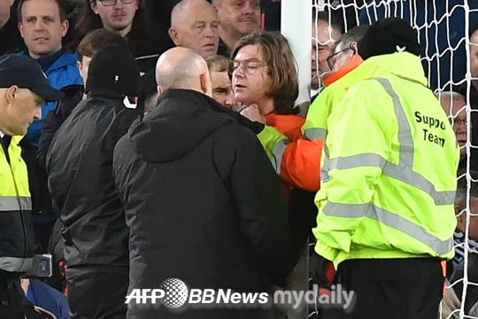 이 관중을 체포한 관할 경찰은 “(현지시간으로) 저녁 8시 55분에 한 남성이 EPL 경기를 방해하고 있다는 신고를 받았다. 그리곤 골대에 자신의 몸을 묶었다는 말을 들었다”며 “이 남성은 현재 경찰에 구금되어 있다. 이 사람과 함께 그라운드에 난입한 39세 남성 역시 경찰에 체포되어 조사를 받고 있다”고 들려줬다.
