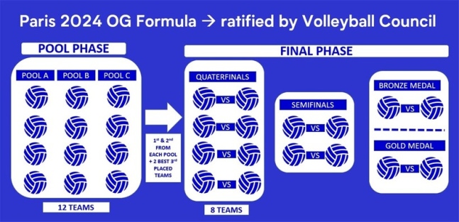 파리올림픽 본선 방식도 바뀐다. 조별리그는 2개에서 3개 조로 늘어난다. 각 4개 팀씩 편성되는 것. 각조 상위 2개 팀과 3위 팀 중 성적이 좋은 2개 팀이 8강 토너먼트에 진출하고, 그대로 4강전과 동메달결정전, 결승전을 펼친다.