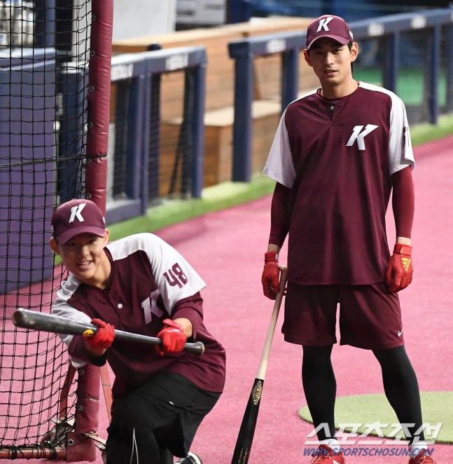 2022 KBO리그 키움 히어로즈와 KIA 타이거즈의 경기가 22일 고척스카이돔에서 열린다. 키움 박찬혁과 이정후가 함께 훈련을 하고 있다. 고척=박재만 기자