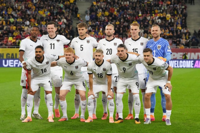 [부쿠레슈티=AP/뉴시스]오스트리아 축구대표팀. 2025.10.12.