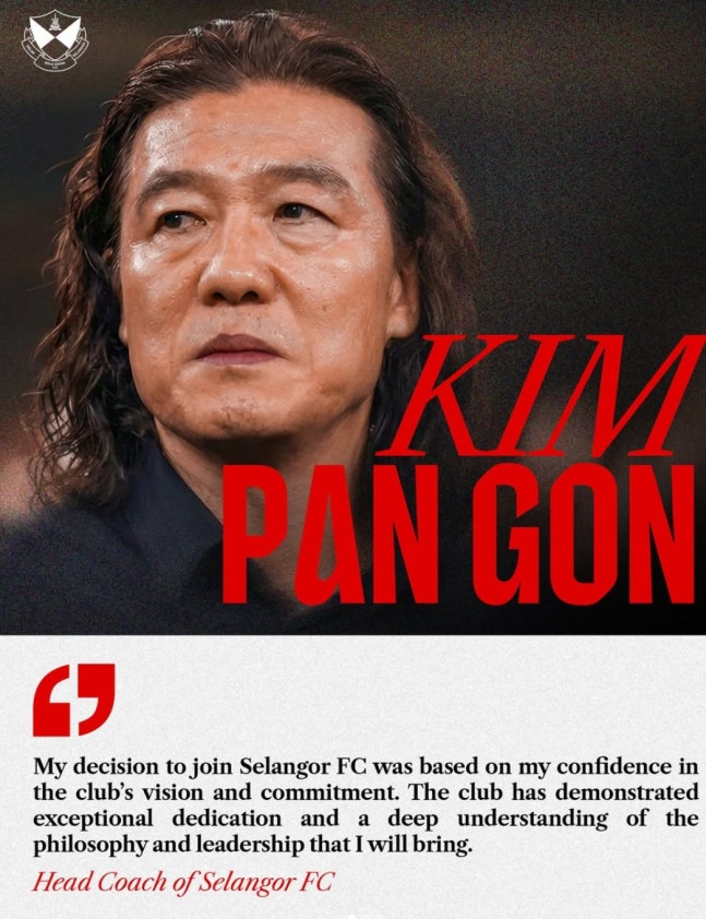 김 감독은 "슬랑오르에 합류한 것은 구단의 비전과 약속에 대한 확신에서 비롯됐다. 구단의 목표와 방향성이 감독으로서의 개인적인 포부와 일치했다. 내 지도 철학은 항상 선수 중심"이라며 "팀이 완벽하게 준비될 수 있도록 고품질 훈련, 전술 계획, 상대 분석 등을 강조한다. 경기장 밖에서도 함께 경쟁할 수 있도록 계속 격려와 동기부여를 제공할 것이다. 고강도와 공격적인 경기력으로 팀에 대한 자부심을 다시 불러일으키겠다"고 자신감을 나타냈다.